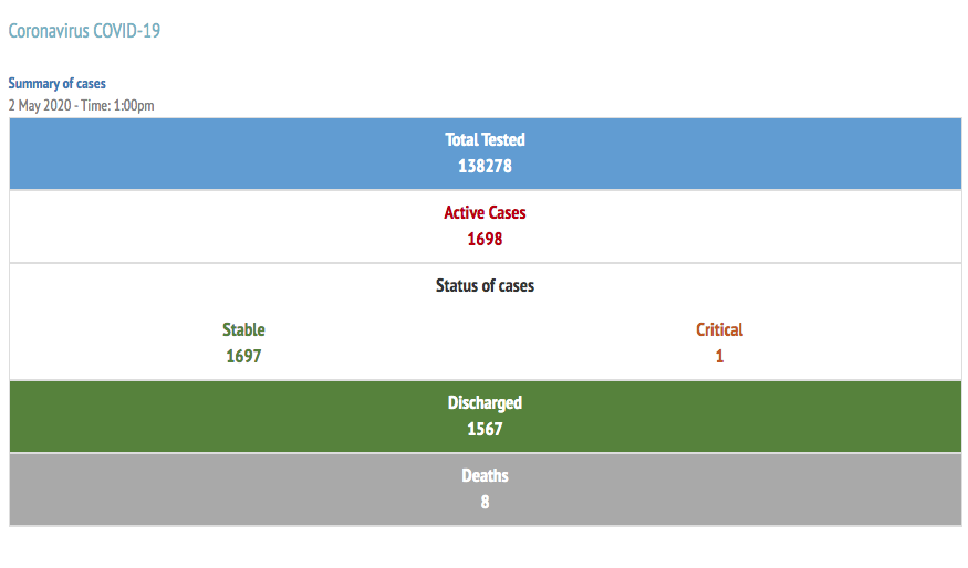 This brings the total number of active cases in the country to 1,698, of which one patient remains in a critical condition.