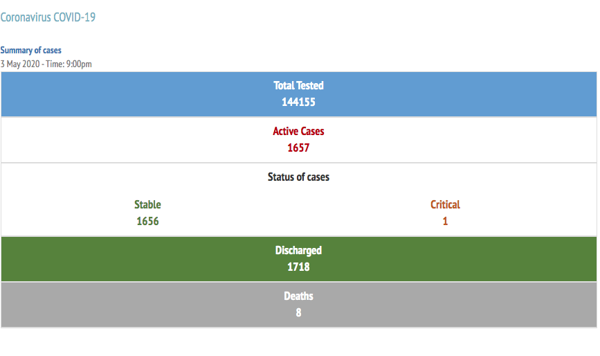 One more has recovered tonight bringing the tally up to 150 and the total of those recovered to 1,718. So far 144,155 tests have been conducted.