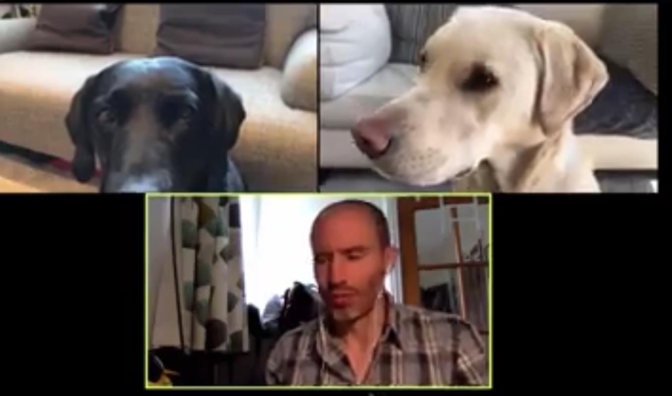 Hilarious! Mabel and Olive - and their owner, the sportscaster Andrew Cotter, are back again.