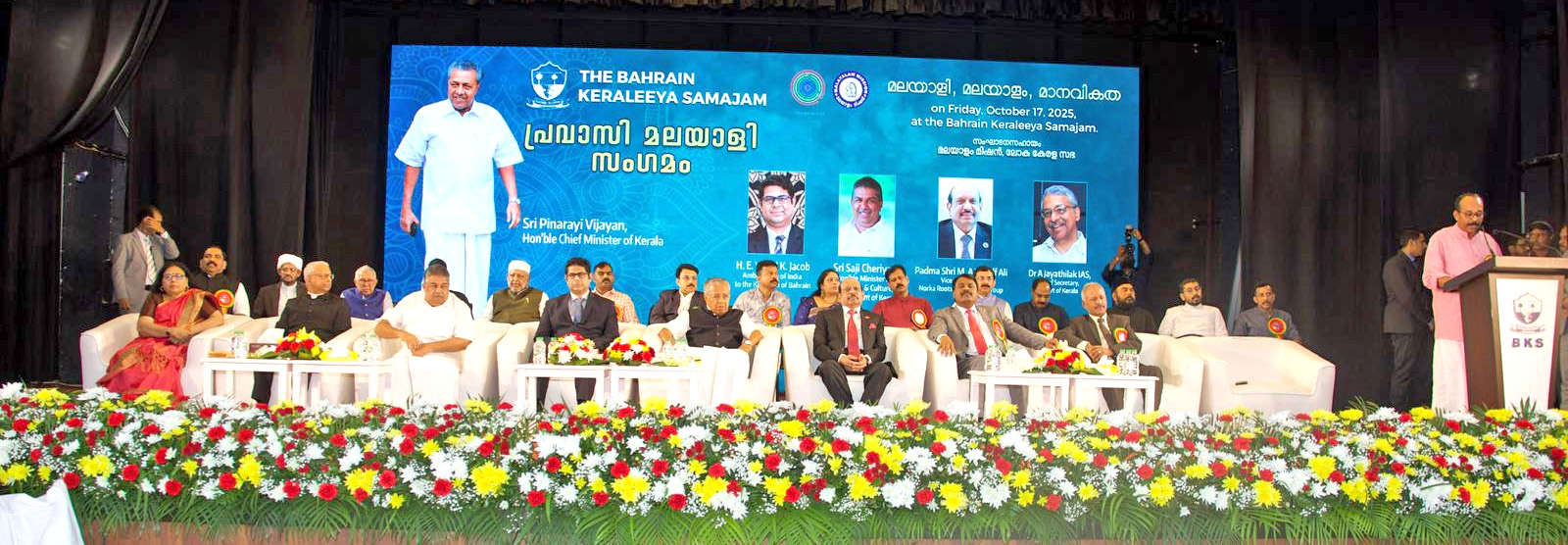 The Pravasi Malayalee Samgamam was organised by BKS in co-operation with Loka Kerala Sabha (LKS), and Malayalam Mission, and brought together the Malayali diaspora in Bahrain for an evening celebrating cultural unity, shared heritage, and developmental dialogue.