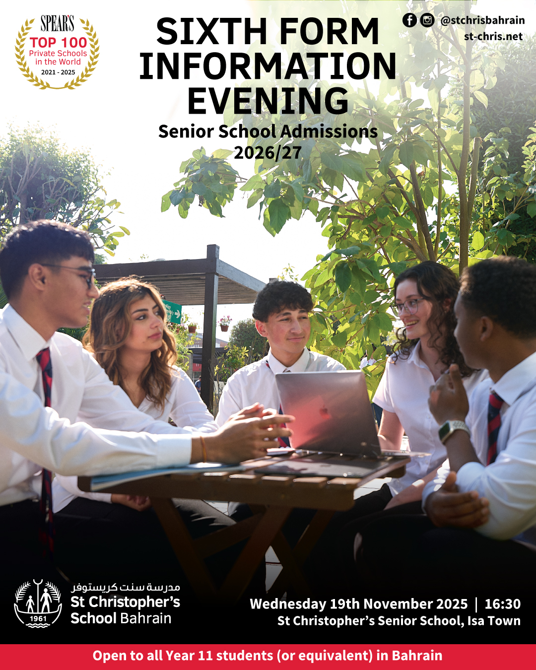 St Christopher's School offers Bahrain's largest number of subject options and varied pathways with the A Level, IBDP and BTEC programmes. We are an award-winning school with a proven record of students progressing to some of the top university destinations globally. Our programme is a rigorous academic and skill-based pathway that focuses on the students’ wellbeing and holistic development.