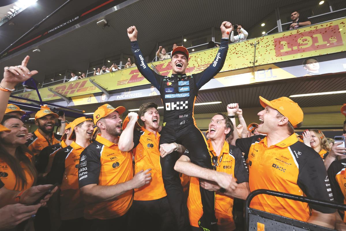 Bahrain’s skyline once again glowed papaya orange in celebration of McLaren’s Lando Norris being crowned as Formula One drivers’ world champion after his podium finish in the Abu Dhabi Grand Prix.