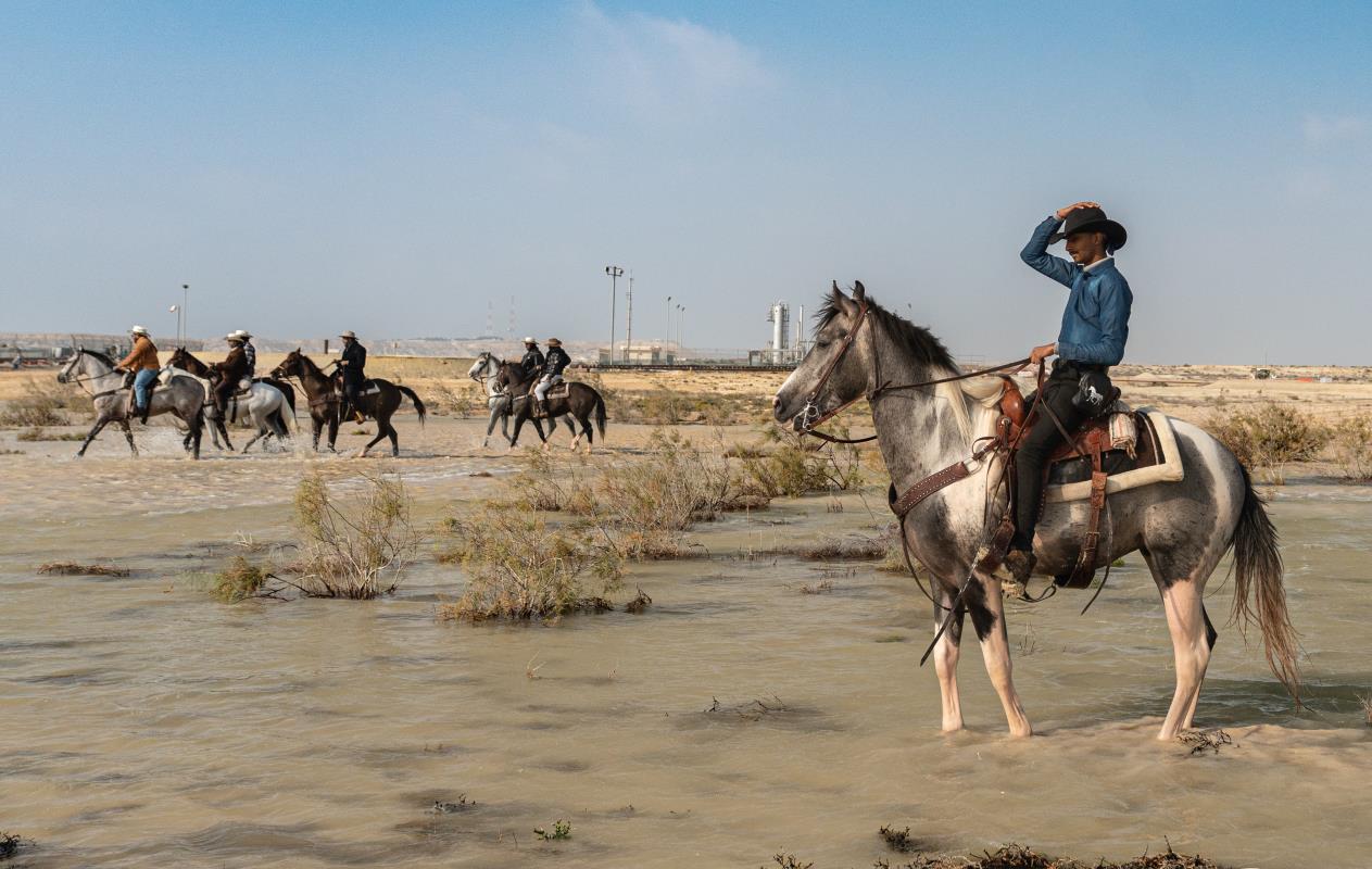 Equestrian Hussain on a low hill in the Sakhir desert. (IG: tuvyan.savuy)