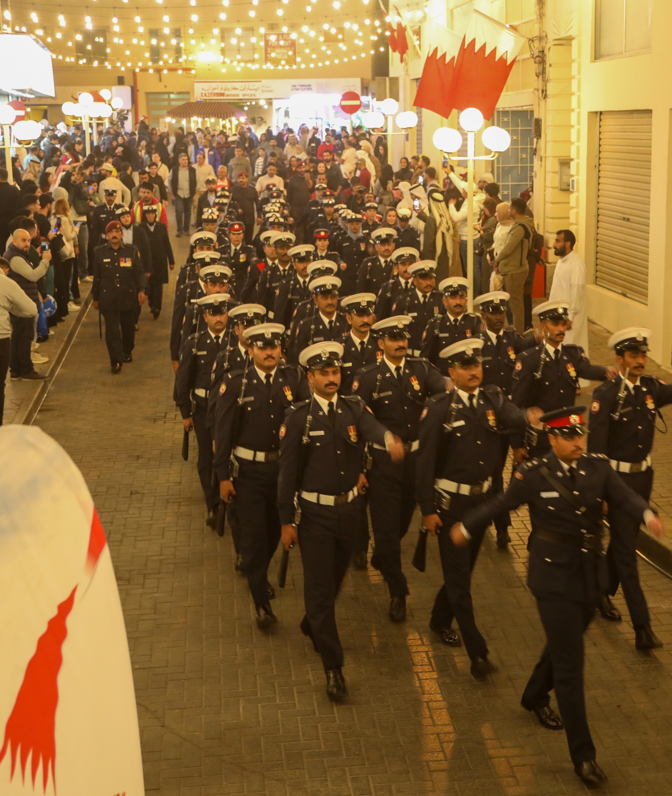 A large number of citizens and residents gathered at Bab Al Bahrain to witness the Bahrain Police Parade, organised by the Interior Ministry to celebrate National Day.