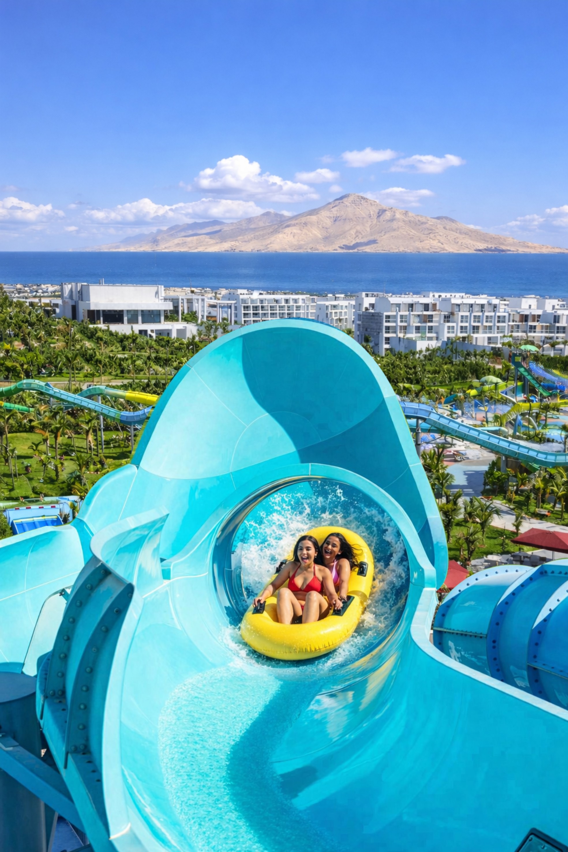 Spanning an impressive 35,000 square metres, Aquamania Jungle Park has been designed to delight guests of all ages with an exceptional range of water attractions and recreational spaces. The new aquapark features 28 new-generation waterslides, a variety of thrilling rides, special slide zones for kids, and a dedicated Ride House splash zone specially created for younger guests.