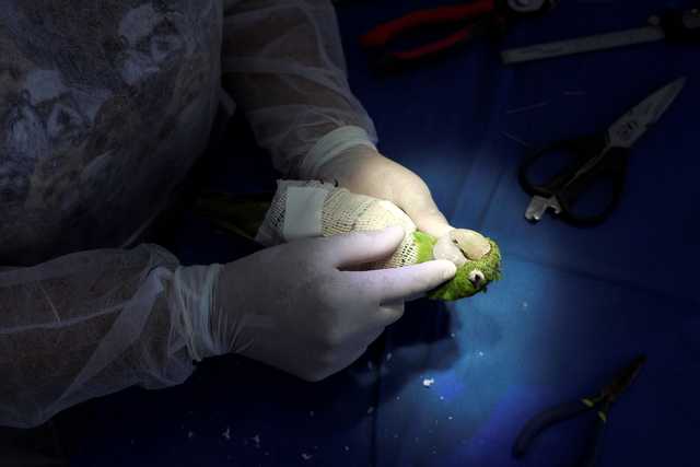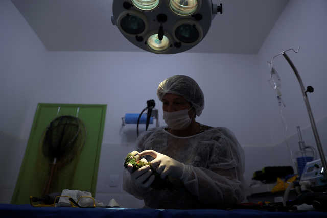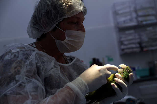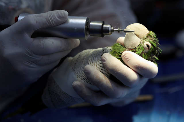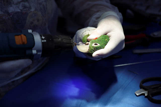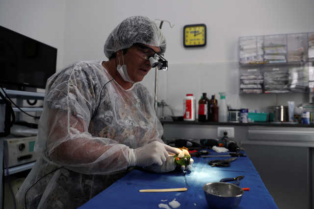 Veterinarian Maria Angela Panelli is on a mission to heal this beautiful bird. She placed a resin prosthesis beak on the parrot during surgery in Barretos, Brazil.