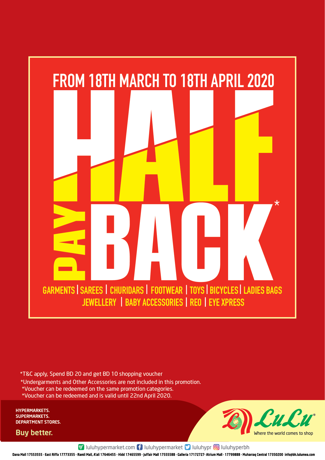 Half Pay Back Offer At Lulu From 18th March - 18th April