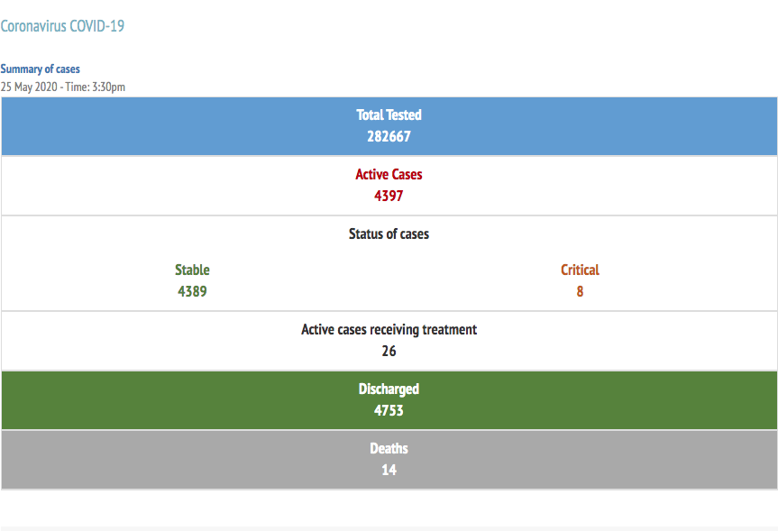 The ministry also announced a further 166 recoveries. In total 4,753 patients have been discharged from quarantine and treatment facilities.