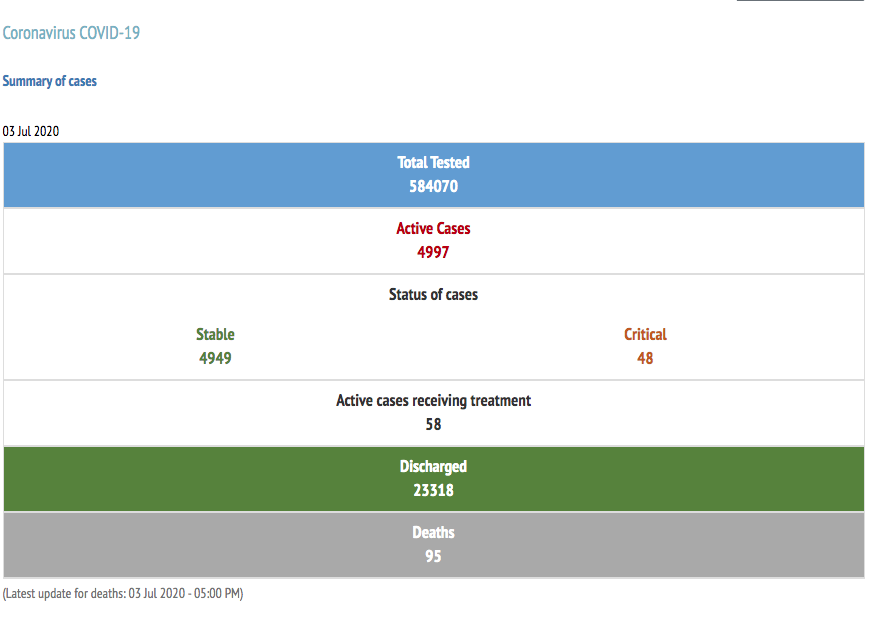 The ministry added that of the 4,997 active cases, 58 are receiving treatment and 48 in critical condition.