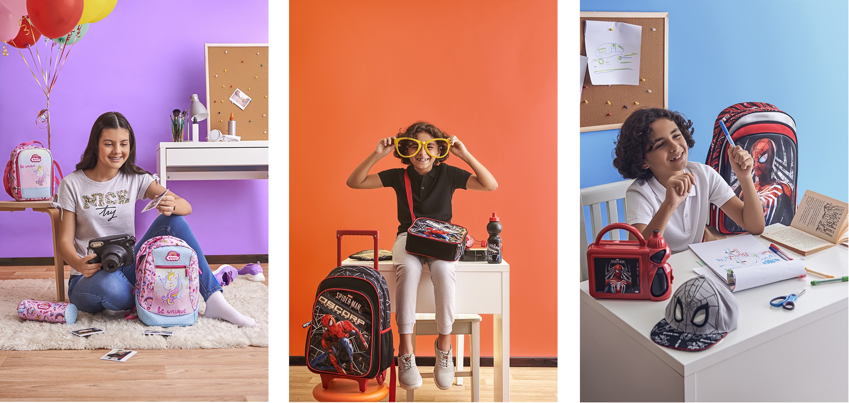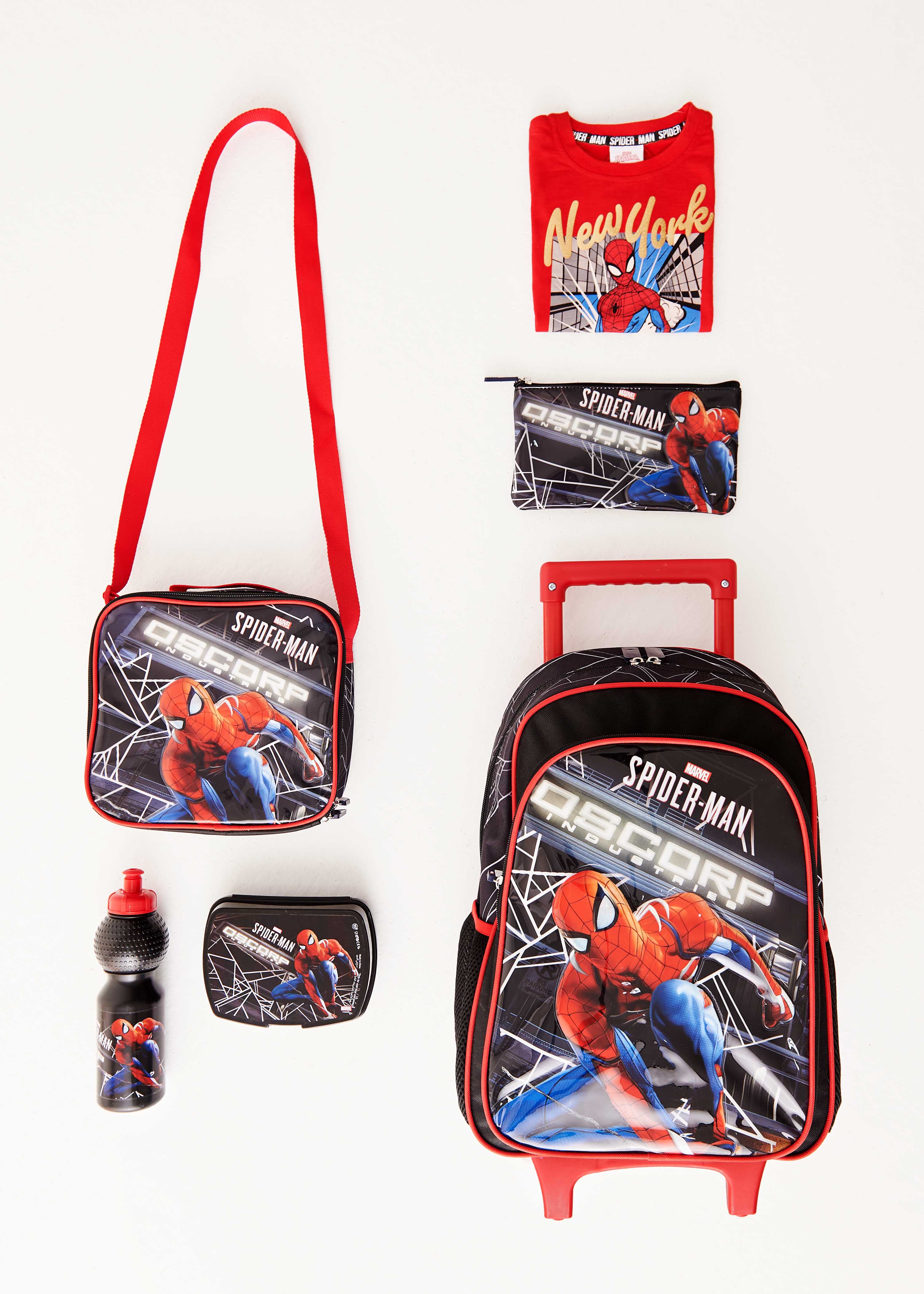 - Let your young ones embrace their inner superhero this school year with awesome pieces that showcase some of their favorite characters. Lunchboxes and water bottles featuring Spiderman and Avengers will make break times more exciting while any kid who loves comics will be ecstatic about an Avengers pencil case. Finish his back-to-school look with a cool Avengers or Spiderman trolley bag, and you’ll have casual cool nailed. The trolley bag pack set including all items is priced at AED119.