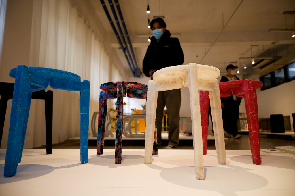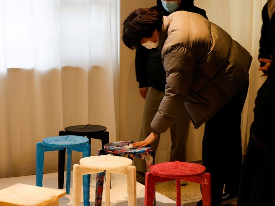 Bothered by the waste caused by disposable face masks, many of which are made of polypropylene, the South Korean furniture design student has come up with an eco-friendly solution, melting them to make stools he calls "Stack and Stack".