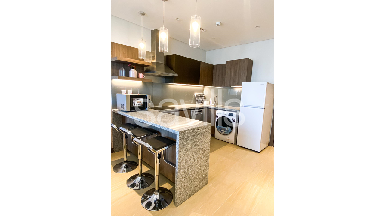 Spacious 1 bedroom apartment in building located opposite the biggest shopping and entertainment mall available for rent. Furnished, includes fully equipped kitchen with all the appliances, great relaxing dining and sitting area, bright large bedroom with build-in wardrobes and panoramic windows. The home offers everything you need.