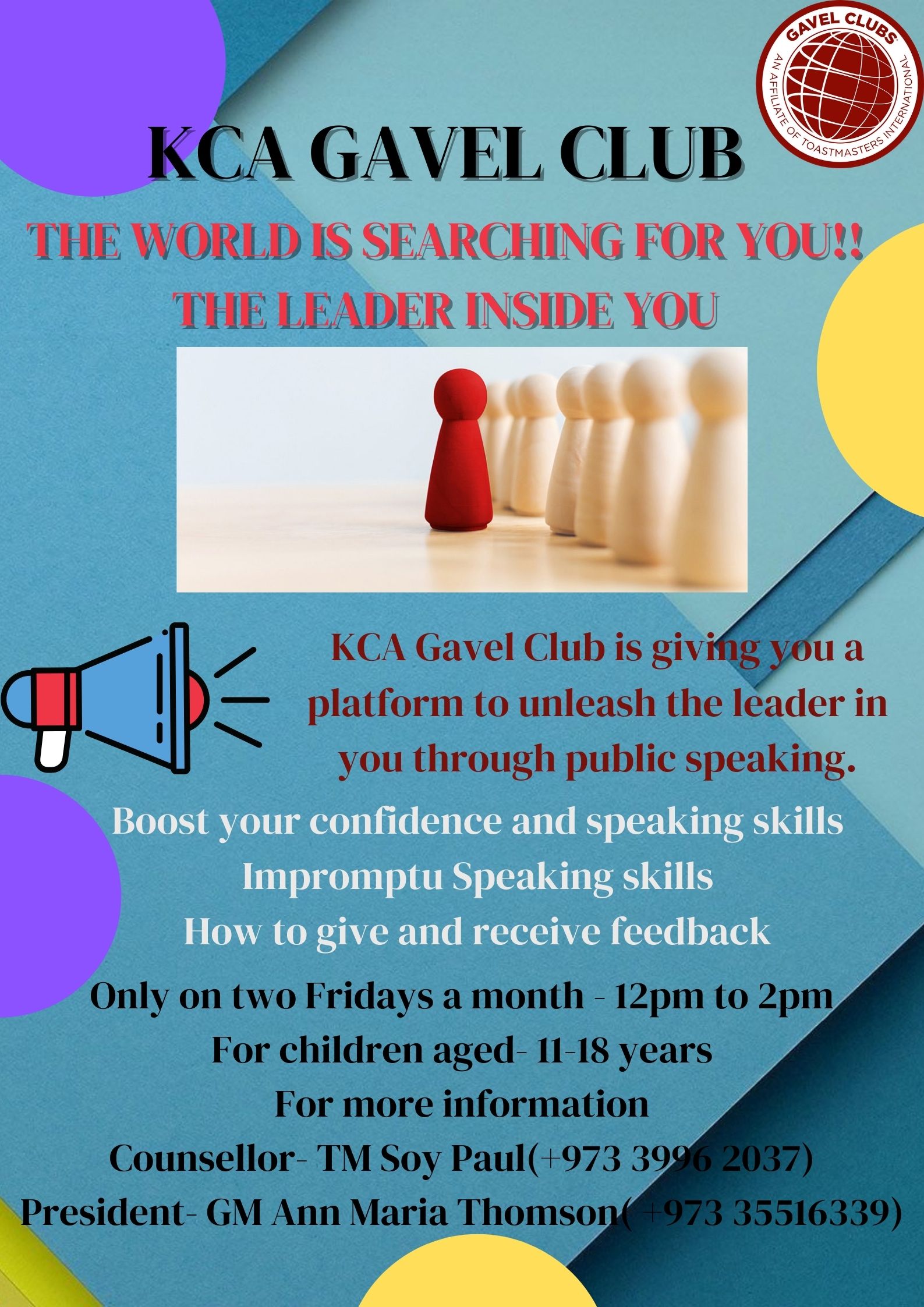 KCA Gavel Club is offering you a unique opportunity to improve your speaking skills and become a leader.