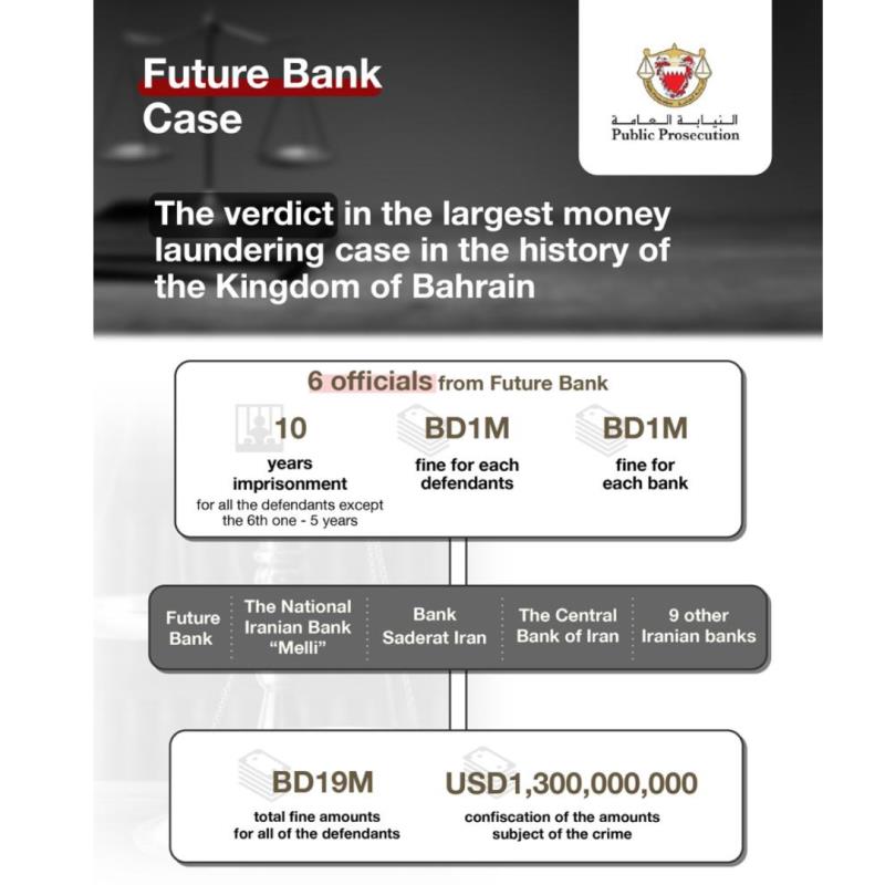 A verdict was issued today in the largest money-laundering case in the history of Bahrain – with multiple banks and officials found guilty of laundering more than a billion US dollars.