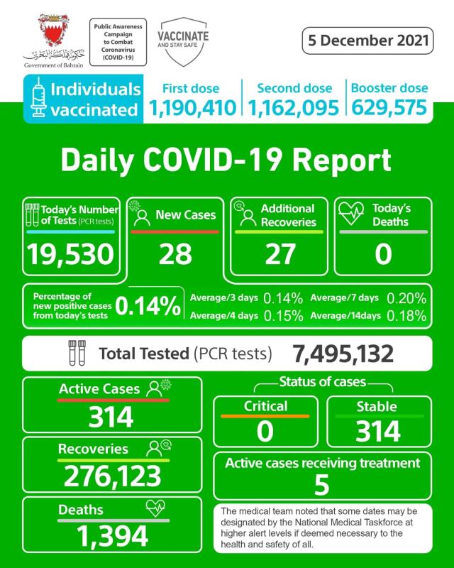 Bahrain yesterday recorded 28 new Covid-19 cases and 27 recoveries, reports GDNOnline.