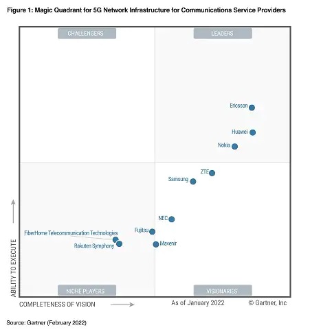 Vendors offering 5G solutions for communications service providers were comprehensively and independently assessed and evaluated by Gartner experts on their Completeness of Vision and Ability to Execute, to provide a market snapshot on 5G infrastructure abilities.