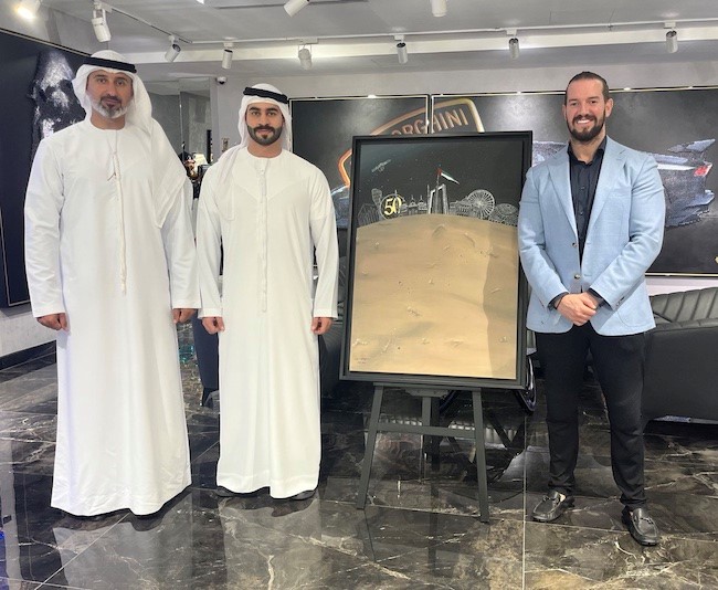 The painting that will be featured in the auction was created by Artist Noora Alredhwan, the Mother of Sheikh Humaid Bin Khalid Al Qasimi. It is dedicated to the 50 year anniversary of the UAE. During EXPO 2020 Dubai it was displayed in the UAE Pavilion for six months. Now, for the first time, it will be accessible for the public.