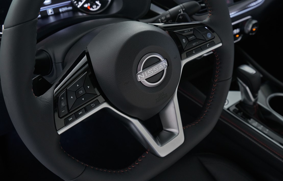 The most prominent feature of the 2023 Nissan Altima is a new front fascia, with an updated expression of Nissan's V-Motion grille that delivers a distinctively sporty design and adopts the redesigned brand logo. Behind the new front fascia, key exterior elements include the now standard LED projector headlights with integrated turn signals in the daytime running lights, expressive, identifiable taillight design and available power sliding glass moonroof. The 2023 Nissan Altima interior offers a near-luxury feel in both design and materials – including revised instrument panel finishings across all trims and a new dual-stitch interior fabric design and carbon-fiber trim for the Sport model. The available 7.0-inch Advanced Drive-AssistTM Display, NASA-inspired Zero Gravity seat design with dual-density foam and bolstering, leather-appointed seating, and 8-way power adjustable driver's seat add to its convenience and connectivity.