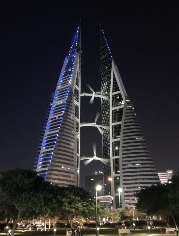 Night view of Bahrain World Trade Center
