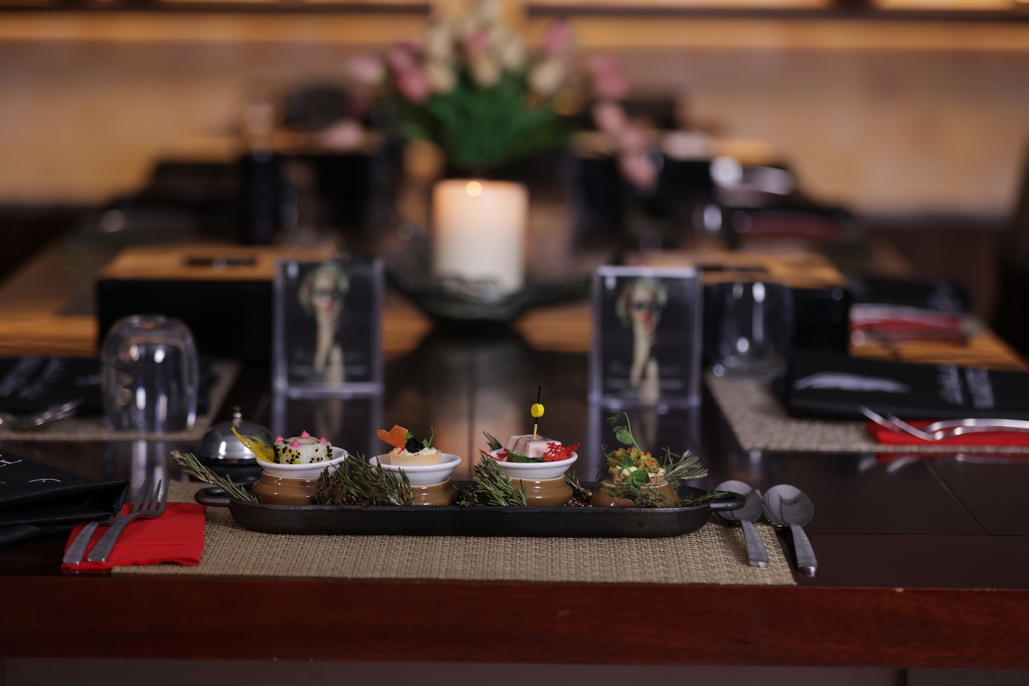 The highlight of the evening takes place as guests will be escorted to their tables in complete darkness. In this sensory deprivation environment, they will savor a thoughtfully curated three-course mysterious menu, allowing their taste buds to take center stage and focus only on each aroma, texture, and flavor of every dish.