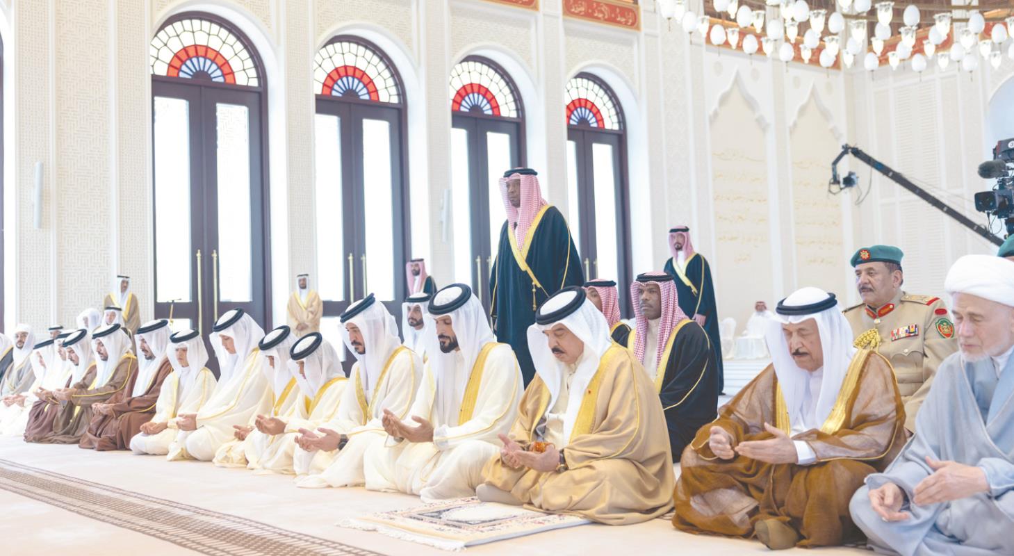 His Majesty King Hamad yesterday performed afternoon prayer at Sakhir Palace mosque, alongside Royal Family members and scholars, marking the anniversary of the Prophet’s Birthday.