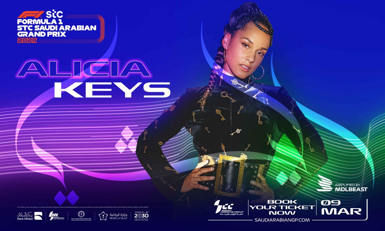 Saudi Motorsport Company (SMC) – Promoter of the FORMULA 1 STC SAUDI ARABIAN GRAND PRIX 2024 – is thrilled to confirm that global music icons Alicia Keys, Pharrell Williams and Martin Garrix have been named as the Headline Acts for the post-race concert line up on the Jeddah Corniche Circuit Main Stage on Saturday March 9th, taking place immediately after the fourth successive F1 race in the Kingdom has concluded.