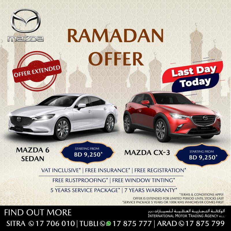 #Mazda #MazdaBahrain #MazdaOffers #RamadanOffersExtended #DrivingExperience #CelebrateDriving #LastDayToday