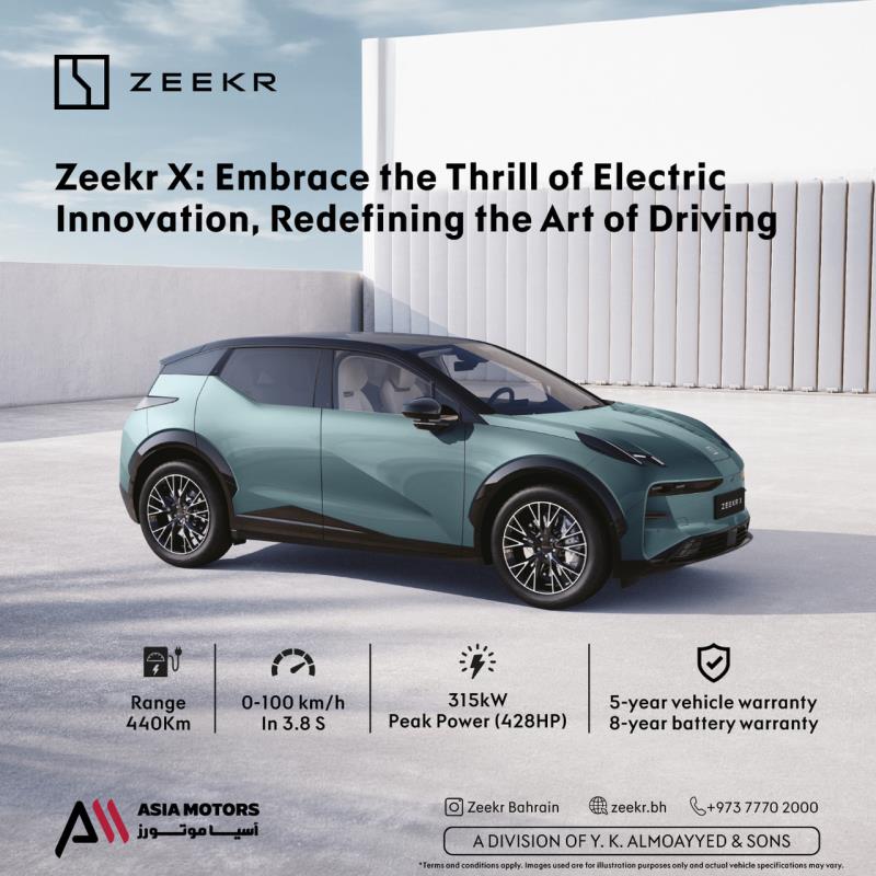 Unleash the Power of Zeekr X: 440Km Range, 428HP Peak Power. Drive with Confidence, Backed by a 5-Year Vehicle Warranty and an 8-Year Battery Warranty! Call us on 77702000 or follow us on @zeekrbahrain preprocess