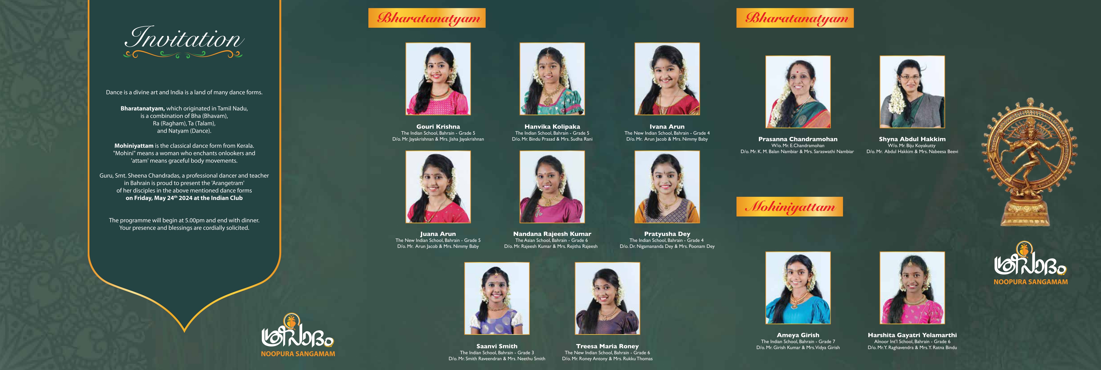 1. Ms. Ameya Girish, D/o Mr. Girish Kumar and Mrs. Vidya Girish, class seven student of The Indian School. Studying Mohiniyattam for 1 1/2 years. Ms Ameya has already performed Arangettam in Bharatanatyam