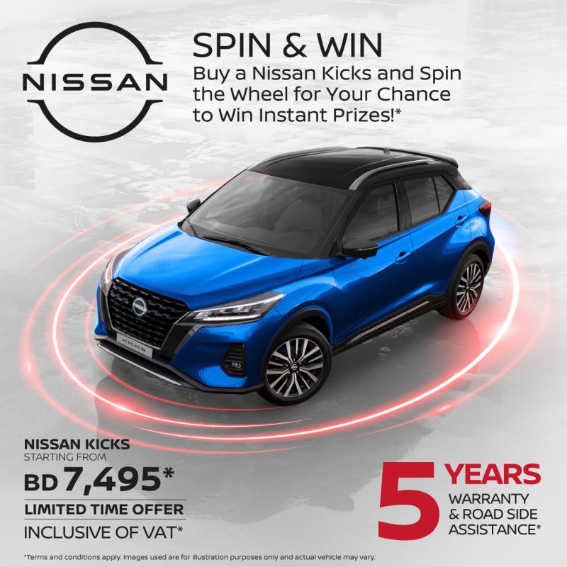 Be one of the lucky winners of instant prizes when you purchase Nissan KICKS. #NisssanBahrain #NissanKicks #Nissan”.
