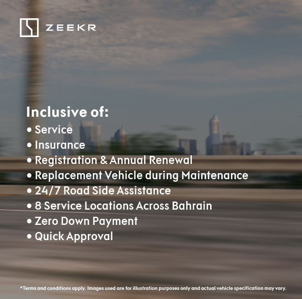 Unleash the Power of Zeekr X: 440Km Range, 428HP Peak Power. Drive with confidence, backed by a 5-year vehicle warranty and an 8-year battery warranty! Call us on 77702000 or follow us on @zeekrbahrain.