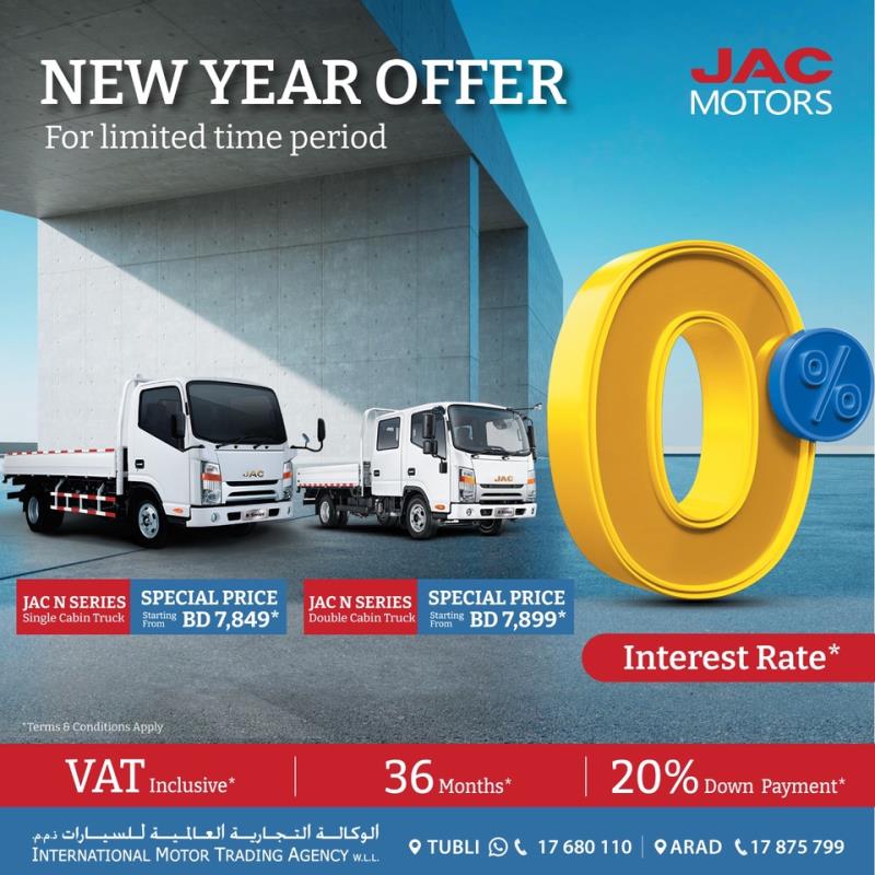 #JACMotors #NewYearDeals #BahrainTrucks #CommercialVehicles #JACTrucks #BahrainBusiness #TruckOffer #VATInclusive #InterestFree #IMTABahrain #TruckDeals #BusinessSolutions #BahrainAutomotive