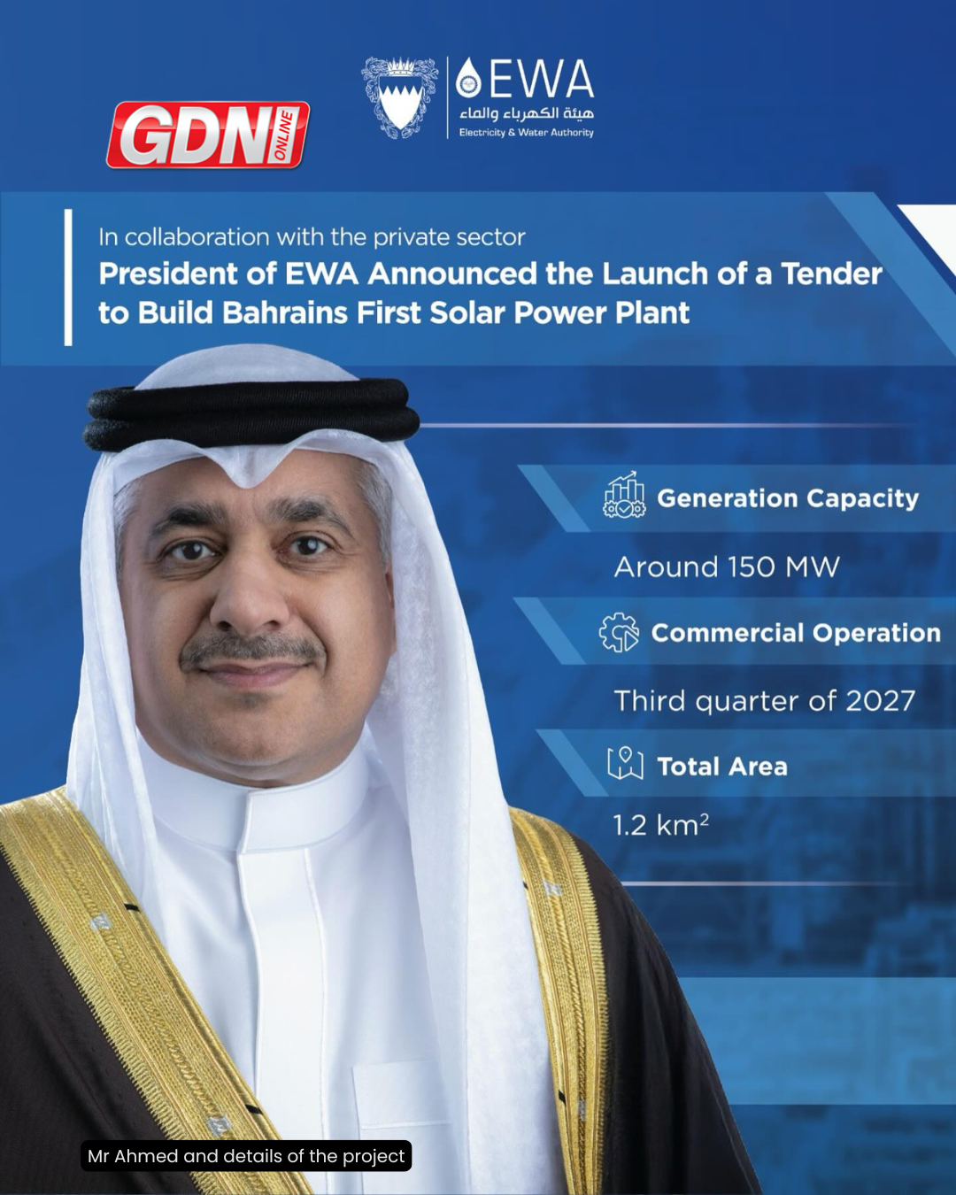 A tender for Bahrain’s first solar power plant has been launched by the Electricity and Water Authority (EWA).