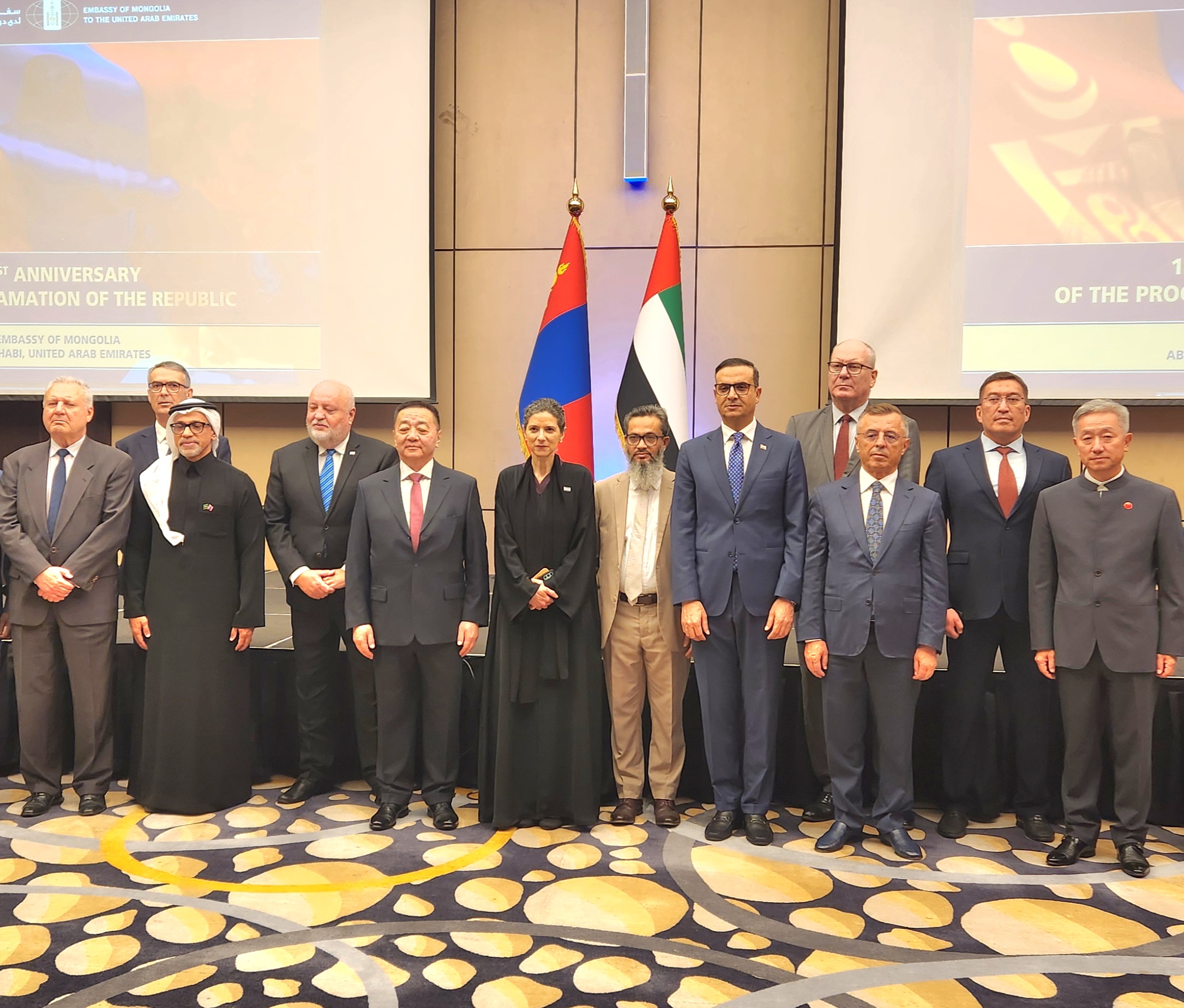 The reception, held in Abu Dhabi, was also attended by a number of senior officials, members of the Arab and foreign diplomatic corps accredited to the UAE, business leaders, media representatives, and members of the Mongolian community residing in the country.