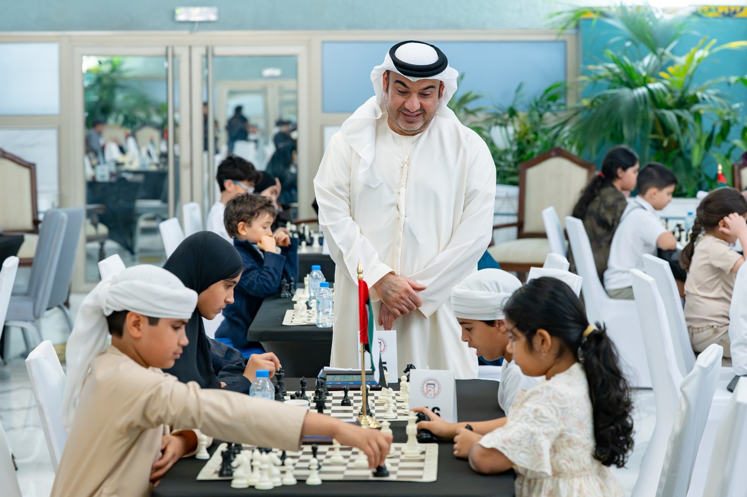 In Chess, Humaidan Mohamed Alzaabi secured first place in the Under-18 Blitz Chess tournament with 6.5 points, followed by Sarvesh Raveender and Obado Sean Adrich. In the Open Blitz category, Gadir Guseinov claimed the title with 7.5 points, while Adam Tukhaev finished second and Basheer Al Qudaimi third.